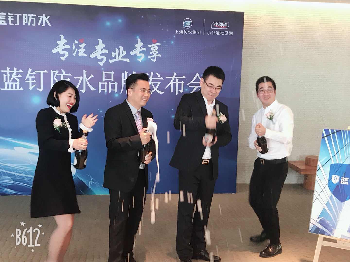 2018年5月4日下午,上海建筑防水材料(集团)防水工程有限公司与小邻通精诚合作,举办蓝钉防水事业部品牌合作发布会。上海建筑防水材料(集团)防水工程有限公司,是经上海市建委批准、具有全国建筑防水一级资质的大型专业化建筑防水施工企业,公司三十多年来承接各类防水工程。拥有自己最新的专业技术,环保材料及一支精湛的施工队伍。